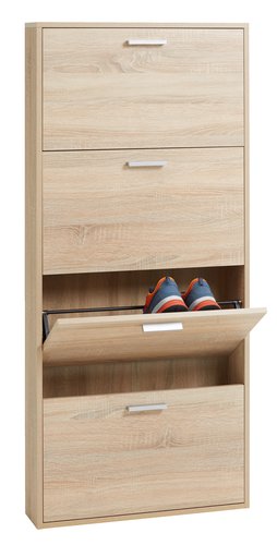 Ormarić je zgodan za uske prostore, iako ima manu što cipele znaju skliznuti iz jedne ladice u drugu. Ormaric izgleda jako lijepo, bas kao na slikama. U ormaric stanu cipele ili tenisice do broja 37. Očuvanje reda u ormaru ponekad može biti izazov, ali sa pravim sistemom, bićete na dobrom putu. Takoder, cizmice zaboravite da cete staviti unutra. U jysku imamo velike i male mogućnosti pohrane za vaše cipele. Čvrst, praktičan, lijep, moja preporuka za kupovinu, ja sam prezadovoljna U jysku imamo velike i male mogućnosti pohrane za vaše cipele.